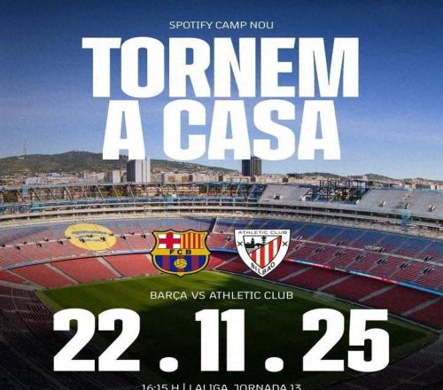 官方確認:巴薩正式回歸 Spotify 諾坎普球場!巴塞羅那俱樂部已于今日(2025年11月17日)通過官方社交媒體宣布:球隊將于本周六(11月22日) 在翻新后的 Spotify 諾坎普球場迎戰畢爾巴鄂